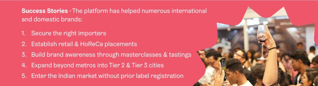 - Access: Importers, distributors, sommeliers, bartenders, retailers & F&B heads, Trade agencies and government delegations—all in one place