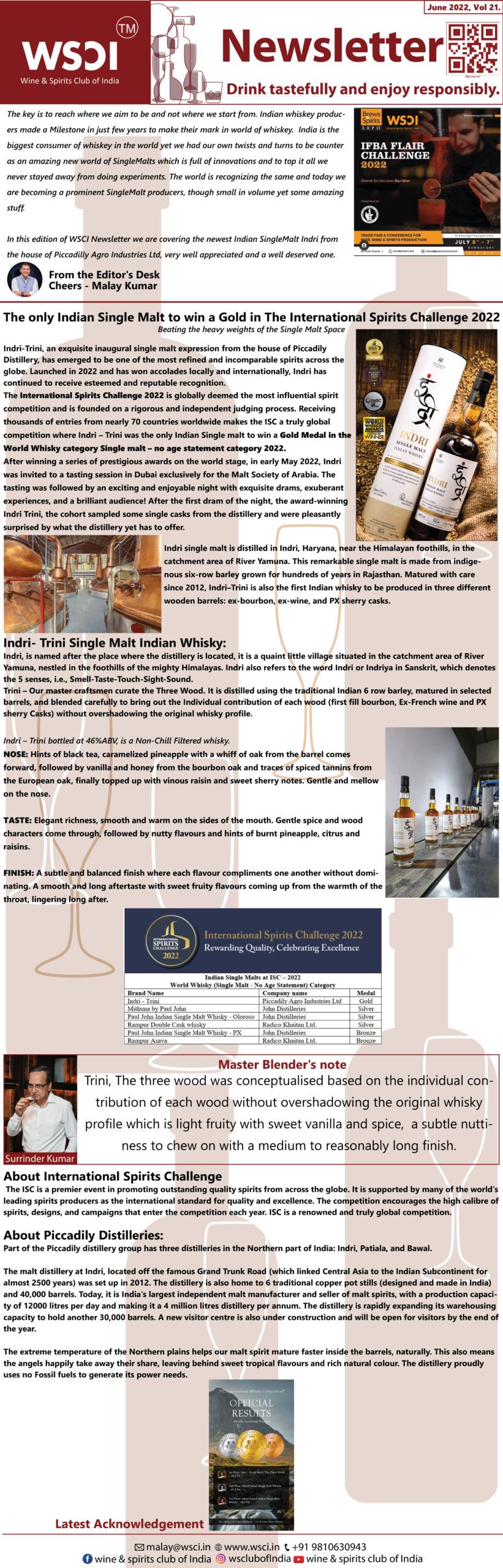 The only Indian Single Malt to win a Gold in The International Spirits Challenge 2022