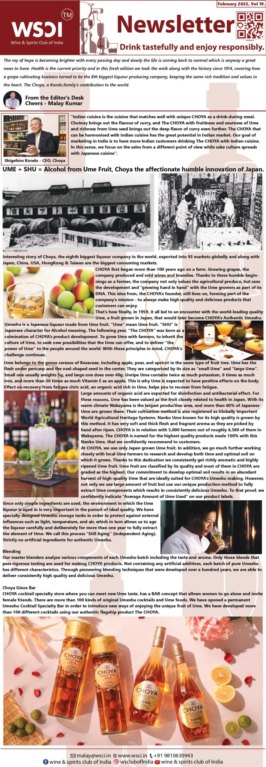 UME + SHU = Alcohol from Ume Fruit, Choya the affectionate humble innovation of Japan.