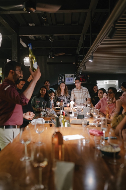 Together, they are responsible for building the vibe of the venue and keeping the energy up. They also play the role of tough negotiators when the slot timings get over and it’s time to reset the room for the next set of guests coming in for wines. Who knew terrible jokes, fun anecdotes, wine cocktails and the tapas style japanese food make for a great wine drinking environment. Their favorite vinyl to play is Pulp fiction and a chant you will often hear at WIP, we never spit… we always swallow’ a nod to never wasting wine and enjoying every last drop.